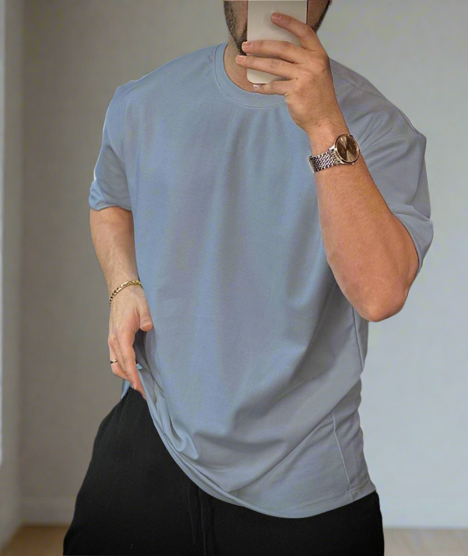 Featuring a drop-shoulder design, this t-shirt embodies a sleek, modern look that pairs effortlessly with any outfit. The relaxed fit and clean lines create a stylish silhouette, making it a versatile addition to your wardrobe.