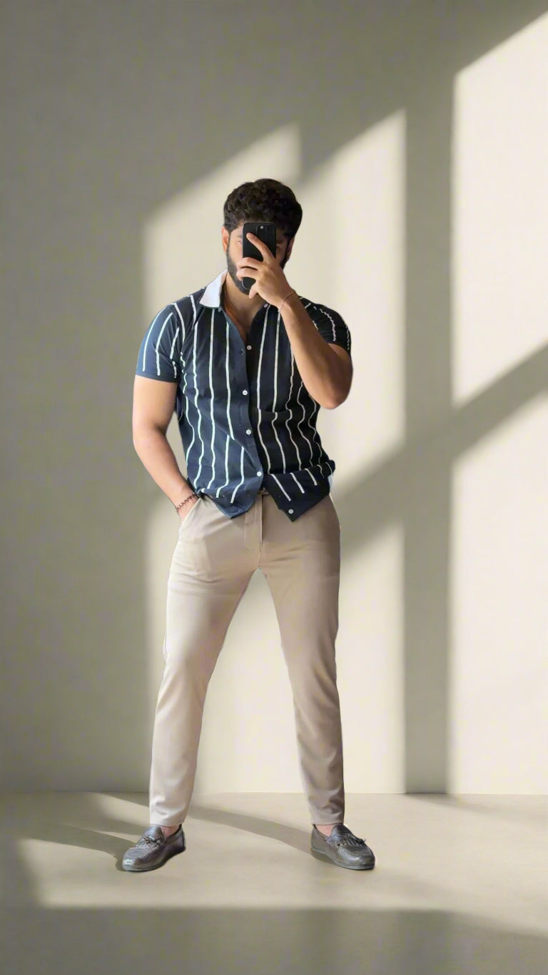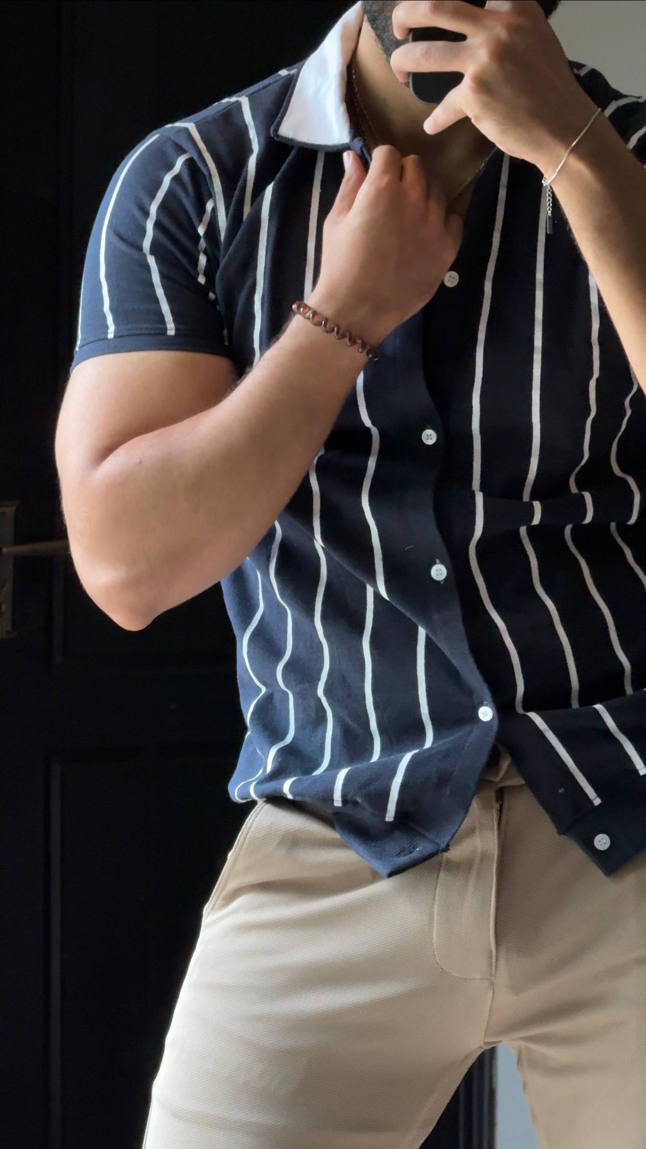 Navy Blue Old Money Lining Shirt