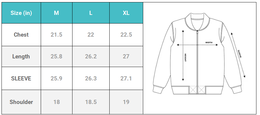 The model in the photos is 6 feet tall and is wearing a Large Jacket.